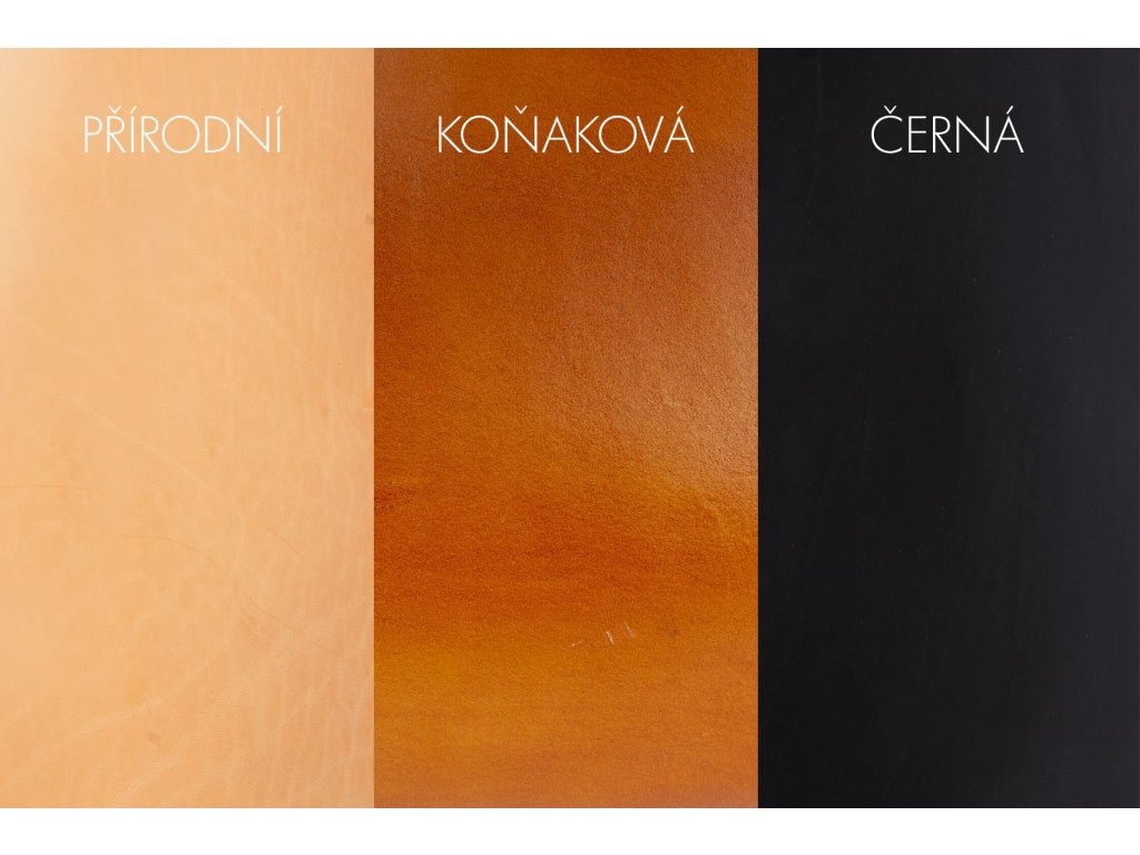 Můžete vybírat ze tří barev kůže. Černé, koňakové a přírodní.