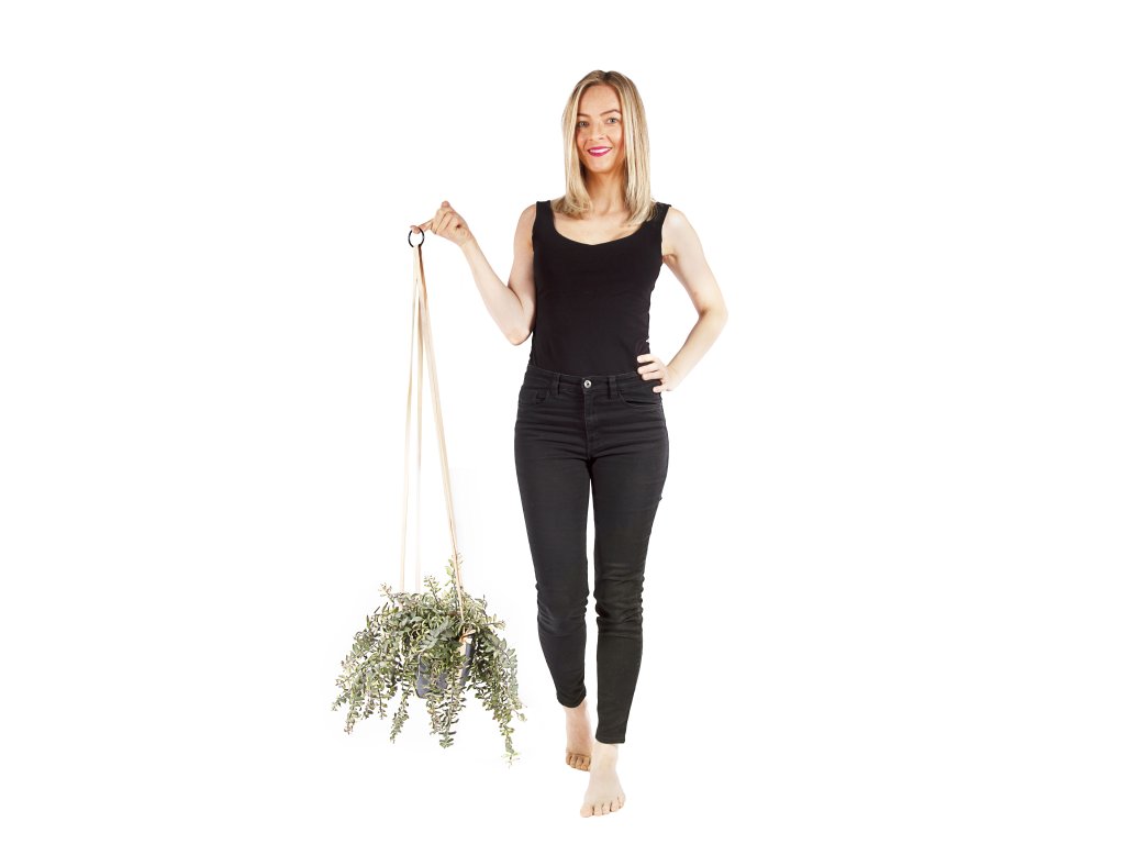 Kožené popruhy pro zavěšení květináče s rostlinou.
